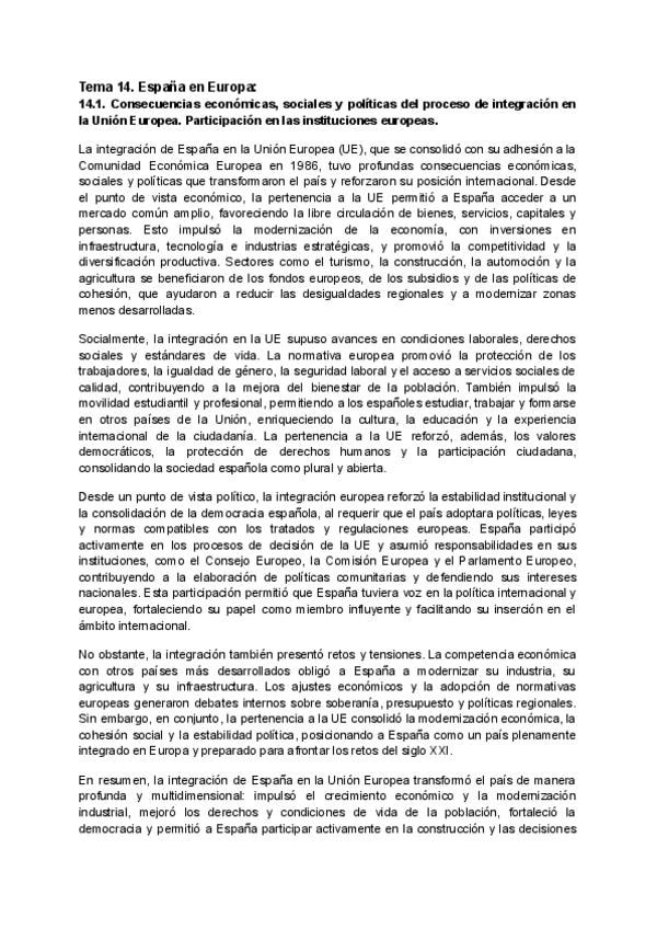 D. Transición y democracia en España. Los retos del Mundo Actual. Historia de España examen EVAU Madrid 2026. Temas 14 y 15.