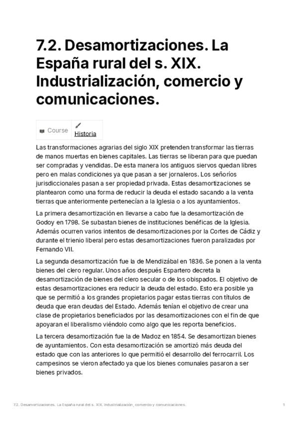 He publicado nuevos apuntes de Historia de España: 7.2.-Desamortizaciones.-La-Espana-rural-del-s.-XIX.-Industrializacion-comercio-y-comunicaciones.pdf