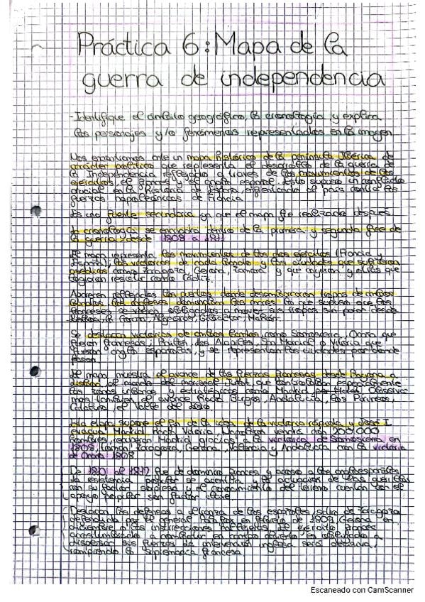 Práctica 6. Mapa de la guerra de la Independencia. Historia de España 2 bachillerato