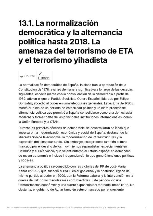 He publicado nuevos apuntes de Historia de España: 13.1.-La-normalizacion-democratica-y-la-alternancia-politica-hasta-2018.-La-amenaza-del-terrorismo-de-ETA-y-el-terrorismo-yihadista.pdf