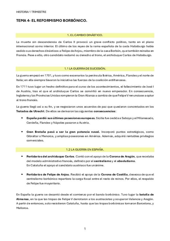 Práctica 5.Tratado de Utrecht. Historia de España 2 bachillerato