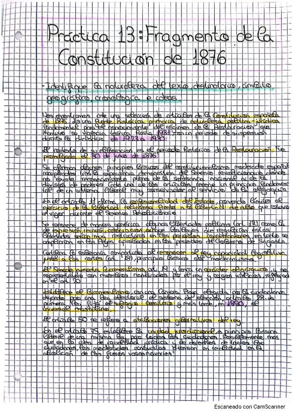 Práctica 13. Fragmento Constitución 1876. Historia de España 2 bachillerato