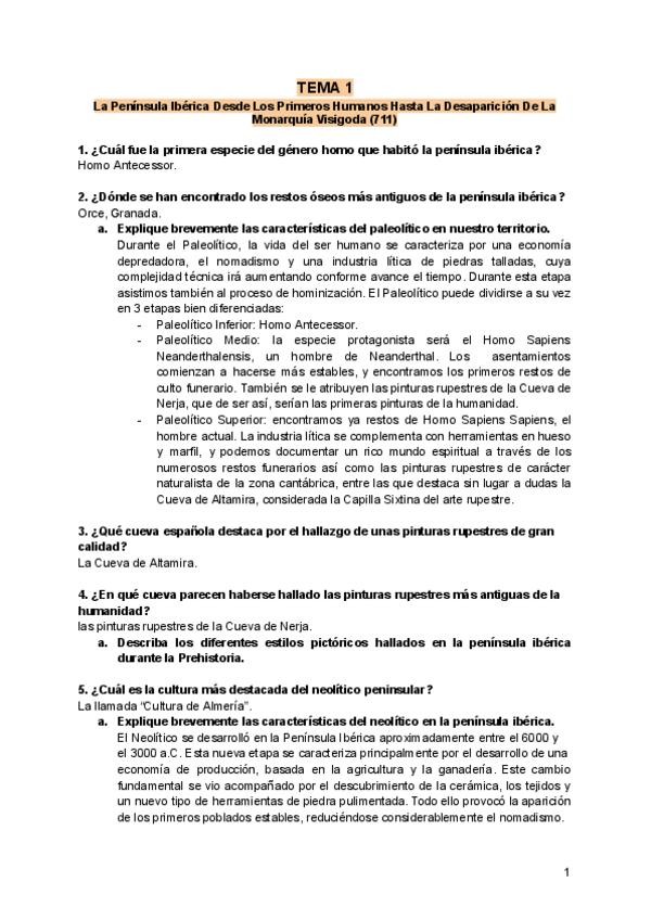 Preguntas cortas de T 1 (La Península Ibérica Desde Los Primeros Humanos Hasta La Desaparición De La Monarquía Visigoda), 4(España en la órbita francesa: el reformismo de los primeros borbones (1700-1788) hasta 10B (Sublevación Militar y Guerra Civil (193