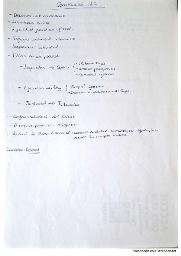 Apuntes 2. Los inicios del Liberalismo en España. Las Cortes de Cádiz y la Constitución de 1812. PAU Andalucía