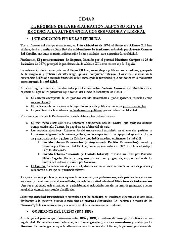 He publicado nuevos apuntes de Historia de España: TEMA-9-El-regimen-de-la-Restauracion.-Alfonso-XII-y-la-Regencia.-La-alternancia-conservadora-y-liberal.-SIGLO-XIX.pdf