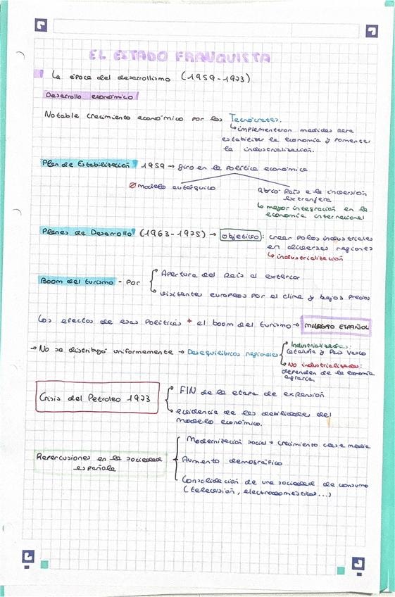 apuntes para la pregunta de desarrollo de selectividad "El Estado franquista: del desarrollismo a la crisis final (1959-1975). " del tema 11 - la dictadura franquista