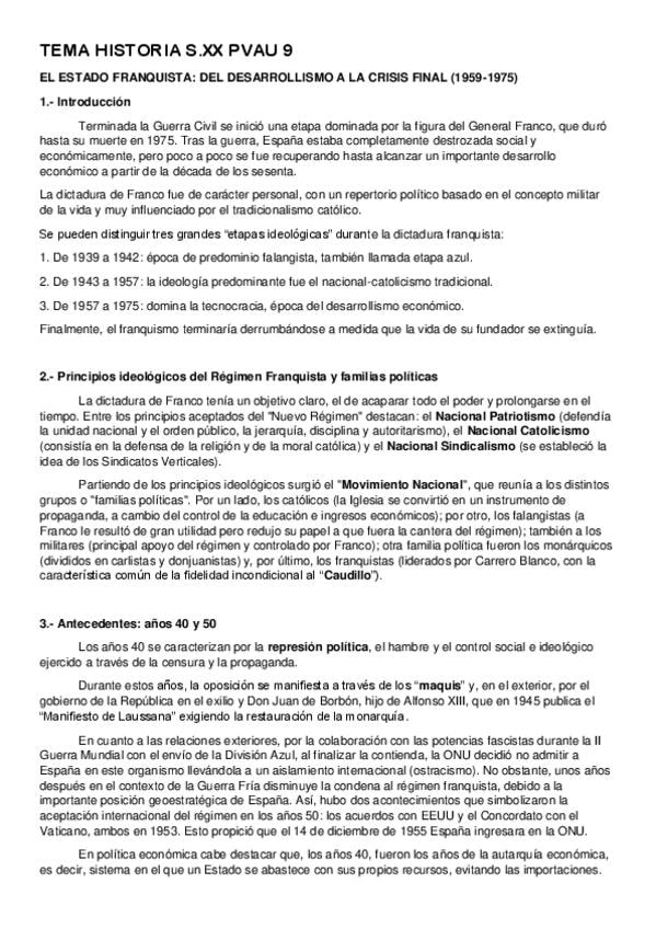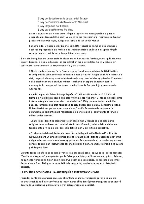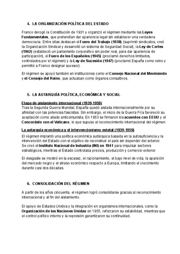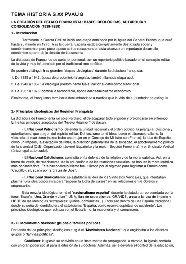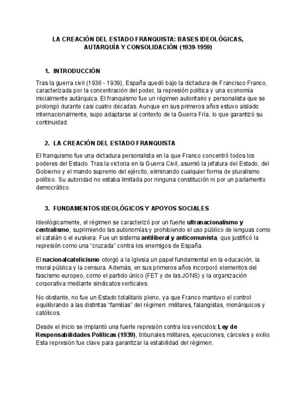 apuntes para la pregunta de desarrollo de selectividad "La creación del Estado franquista: bases ideológicas, autarquía y consolidación (1939-1959)" del tema 11 - la dictadura franquista