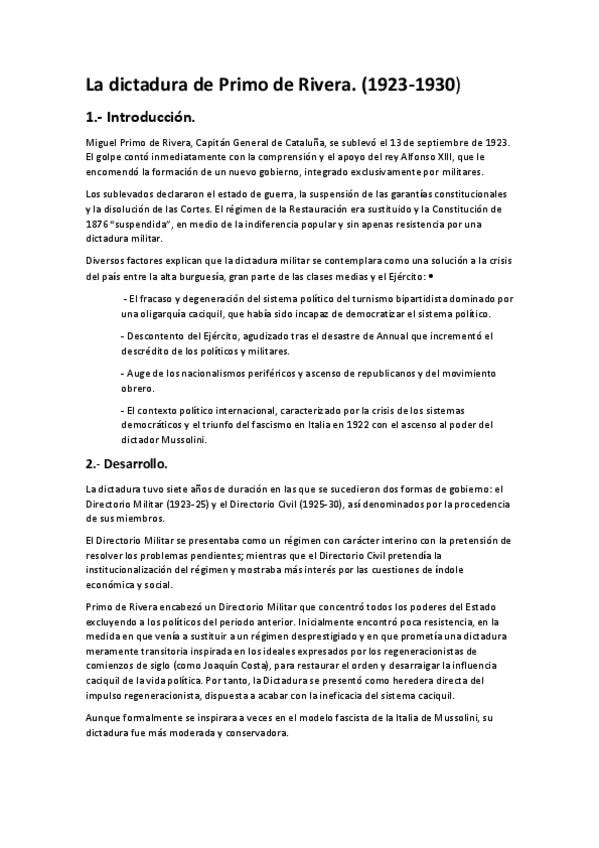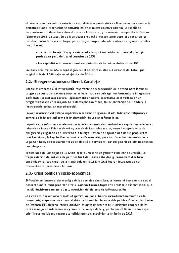 Apuntes sobre la crisis de la restauración, el regeneracionismo y primo de rivera
