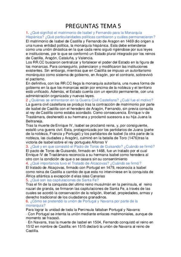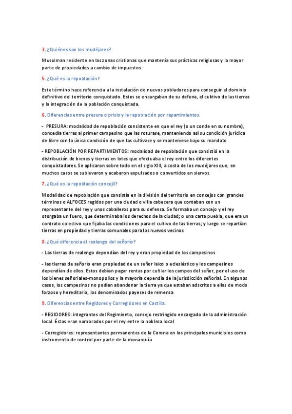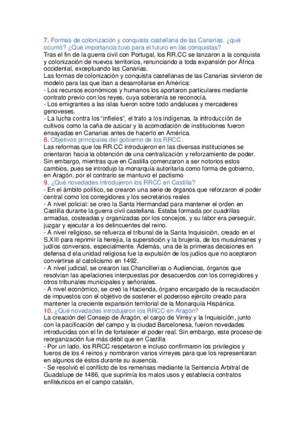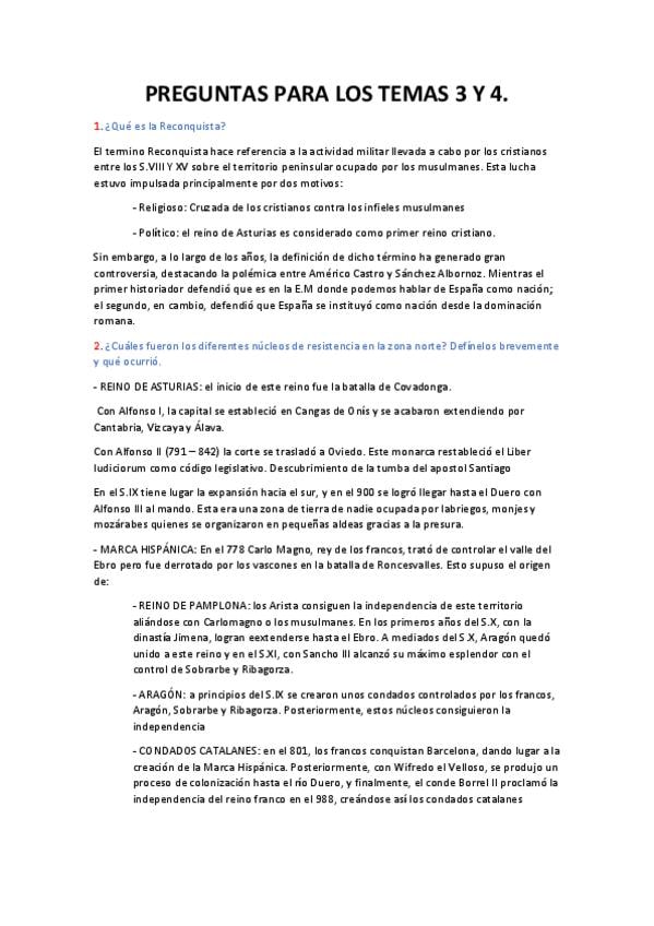 Cuestiones cortas de todos los temas de Historia de España