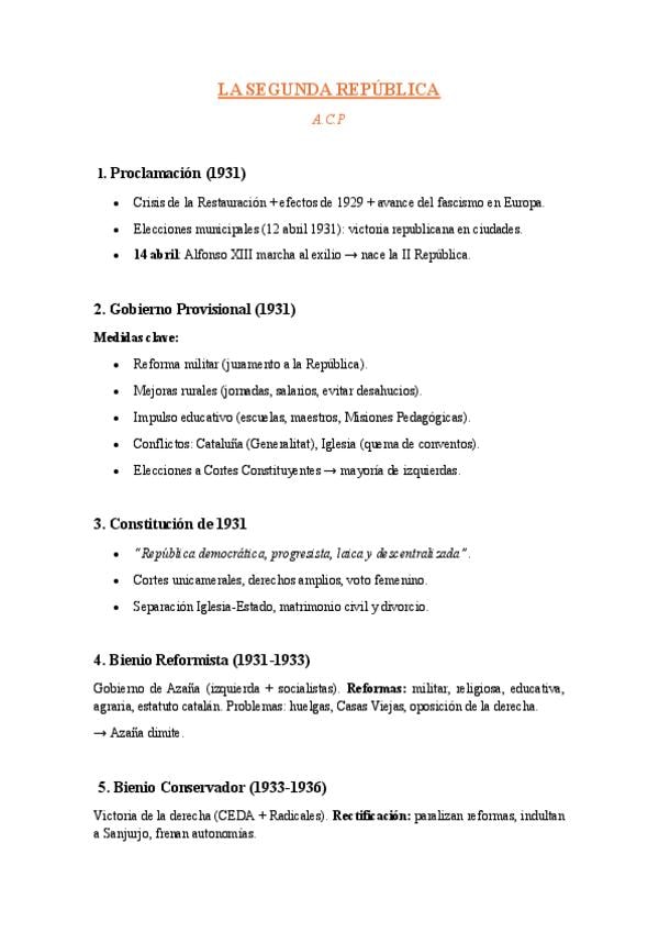 Apuntes sobre la 2º República con los que saqué un 13.7 en la PAU 2025