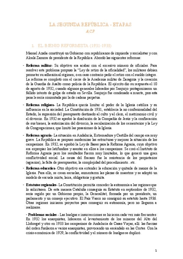 LA SEGUNDA REPÚBLICA - SELECTIVIDAD