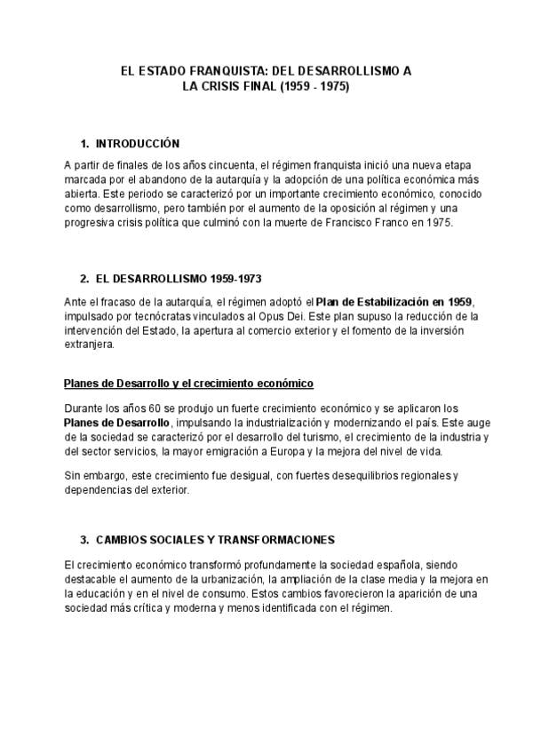 EL ESTADO FRANQUISTA: DEL DESARROLLISMO A LA CRISIS FINAL (1959-1975)