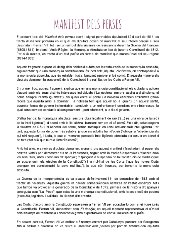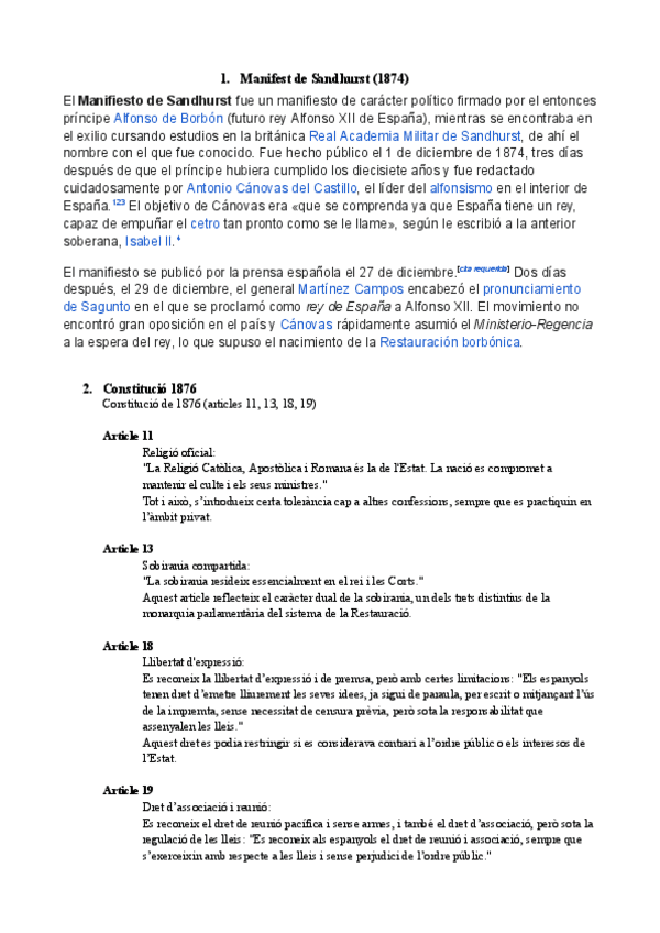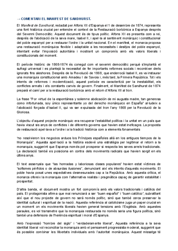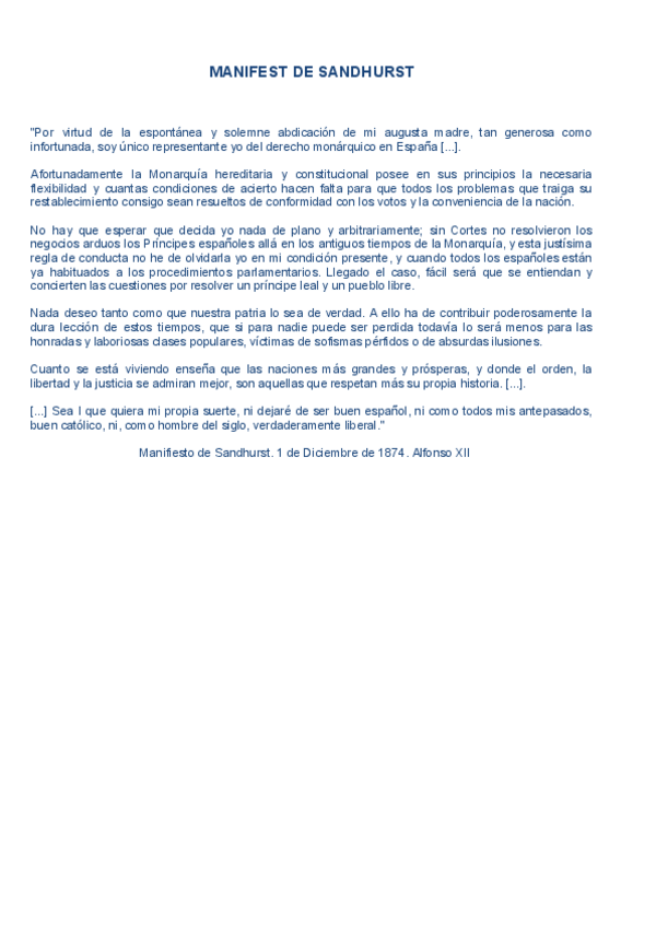 HISTÒRIA D'ESPANYA COMENTARI DE TEXT PARCIAL 2: MANIFEST DE SANDHURST