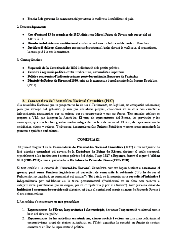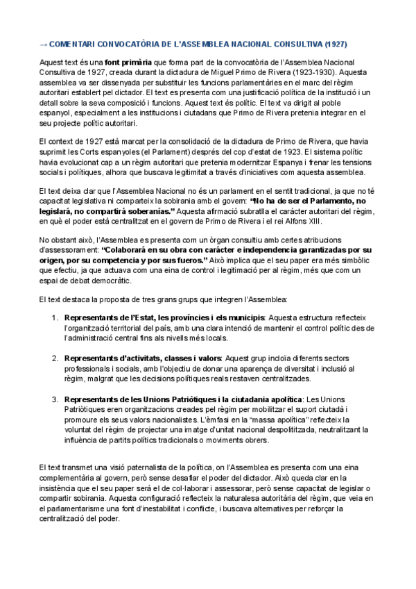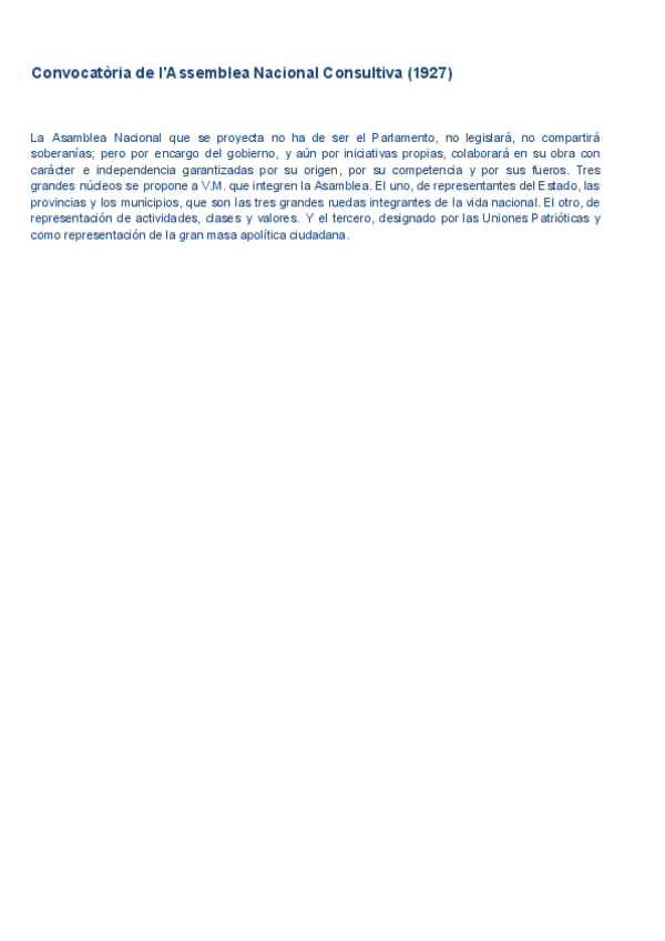 HISTÒRIA D'ESPANYA COMENTARI DE TEXT PARCIAL 3: Convocatòria de l’Assemblea Nacional Consultiva (1927)
