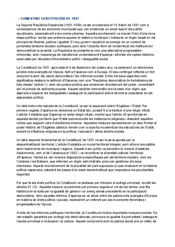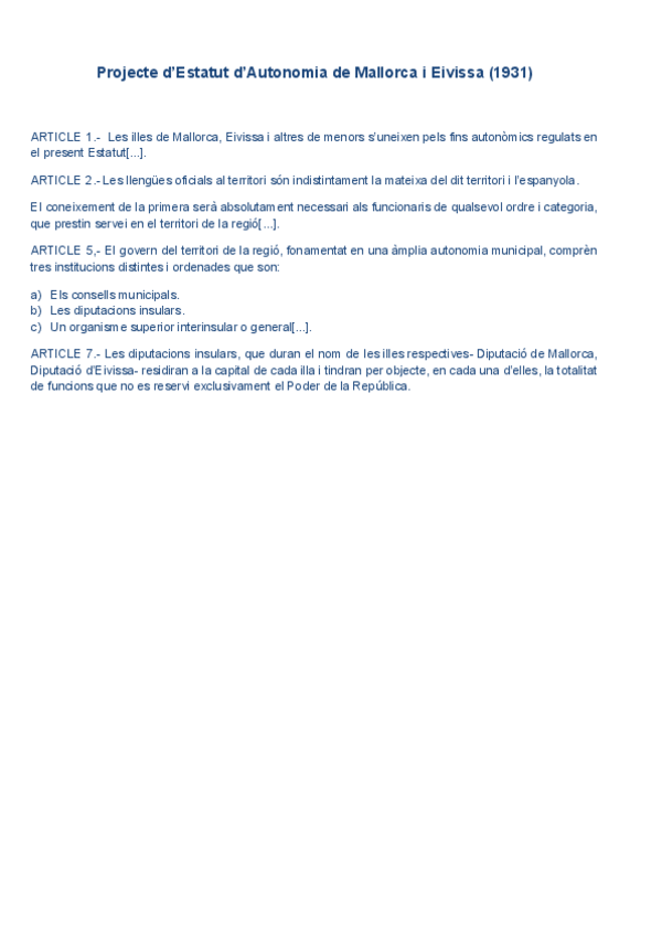 HISTÒRIA D'ESPANYA COMENTARI DE TEXT PARCIAL 3: Projecte d’Estatut d’Autonomia de Mallorca i Eivissa (1931)
