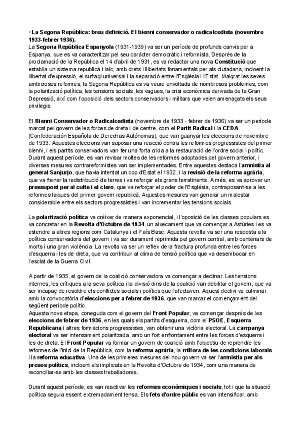 HISTÒRIA D'ESPANYA TEMA PARCIAL 3: La Segona República_ breu definició. El bienni conservador o radicalcedista (novembre 1933-febrer 1936).