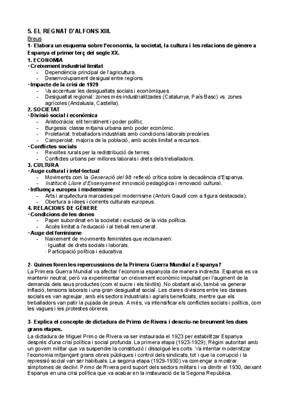 HISTÒRIA D'ESPANYA PARCIAL 3 BREUS: EL REGNAT D’ALFONS XIII.