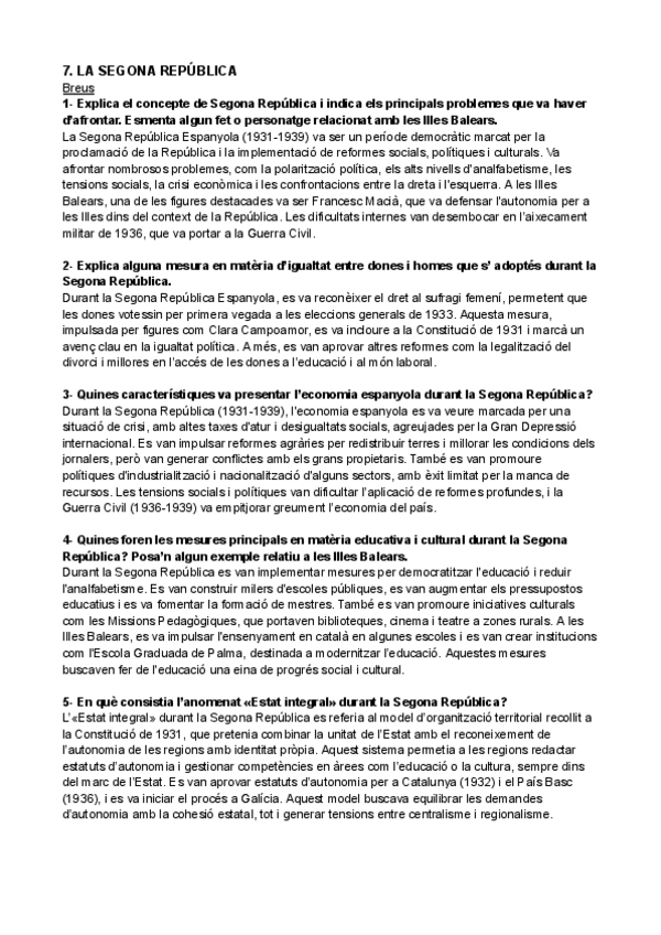 HISTÒRIA D'ESPANYA PARCIAL 3 BREUS: LA SEGONA REPÚBLICA