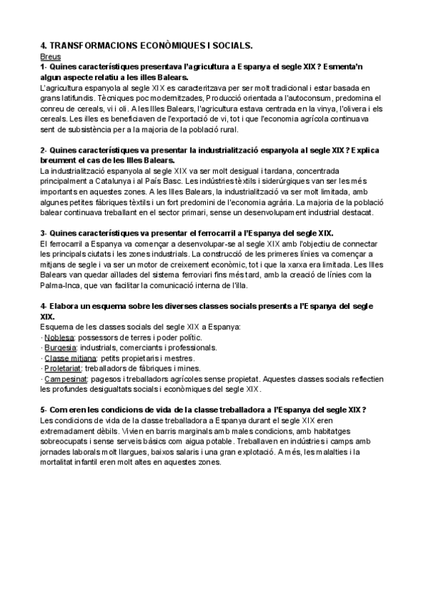 HISTÒRIA D'ESPANYA PARCIAL 3 BREUS: TRANSFORMACIONS ECONÒMIQUES I SOCIALS.