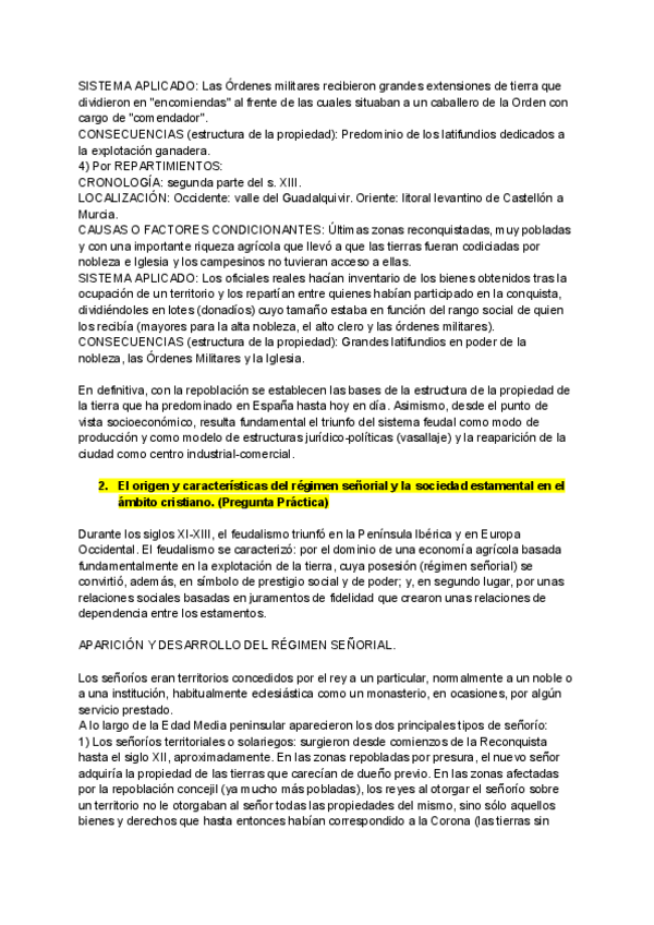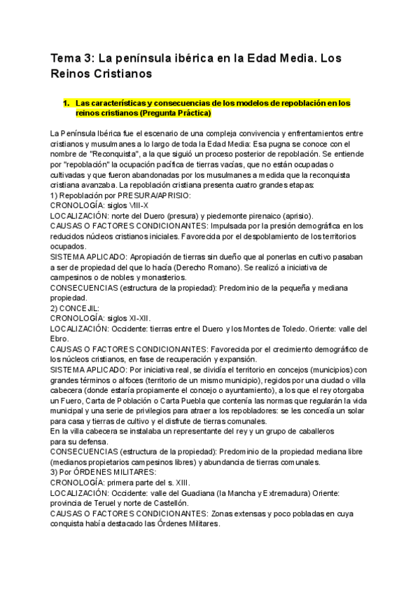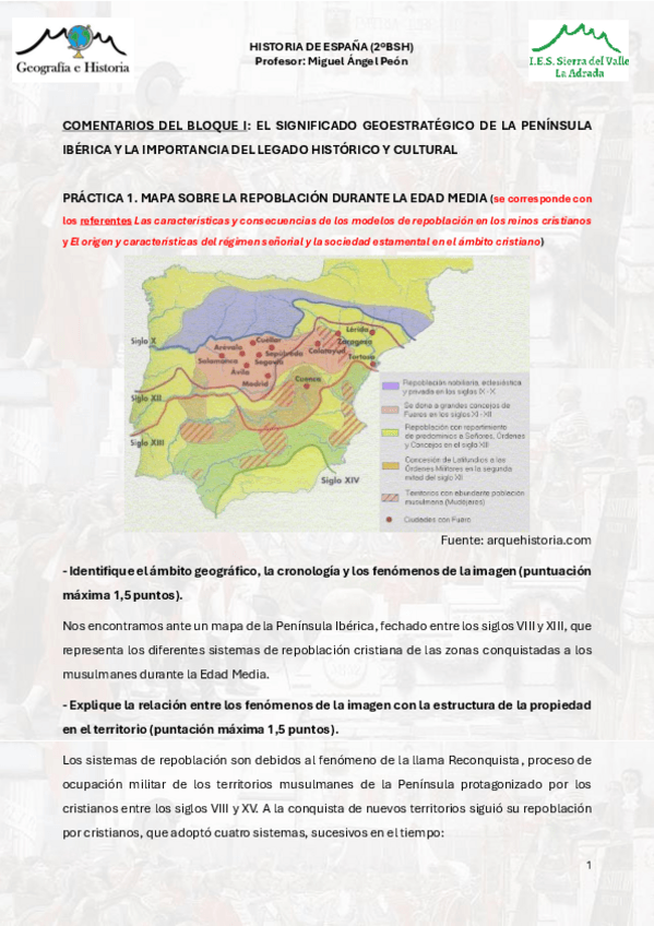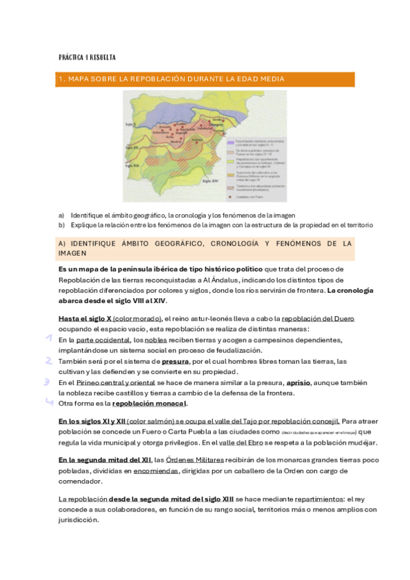 Práctica/ejercicio MAPA SOBRE LA REPOBLACIÓN DURANTE LA EDAD MEDIA resuelta para estudiar directamente de la PAU.