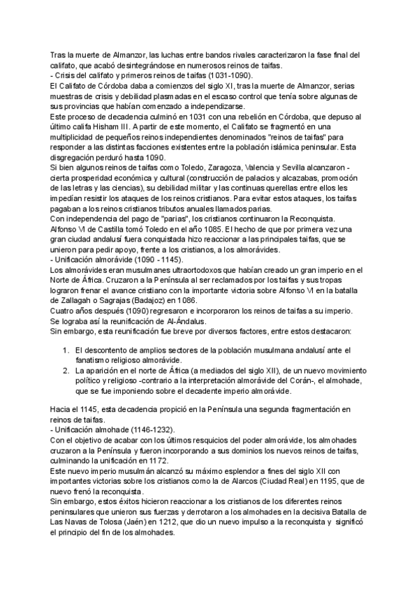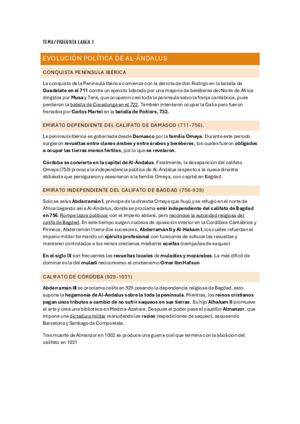 Evolución política de Al-Ándalus. Pregunta larga para la PAU de CyL. Resumen/apuntes para estudiar directamente para la PAU. Tengo el resto de preguntas o temas en mi perfil.