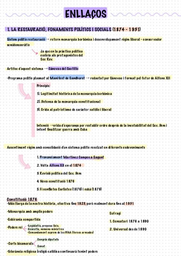 Sexenio Democrático y la Restauración Borbónica, más esquematizado . 2 de bach