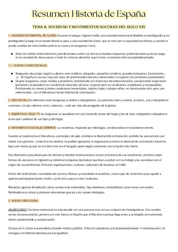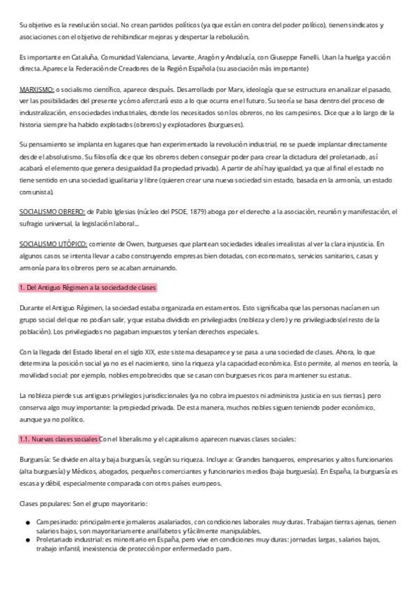 Resumen historia de España Sociedad y Economía del siglo 19 burguesía proletariado marxismo anarquismo