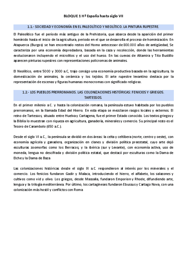 Epígrafes redactados completos de los 3 primeros bloques de temas de Historia de España para responder en la PAU. Abordan desde el Paleolítico hasta el siglo XVIII