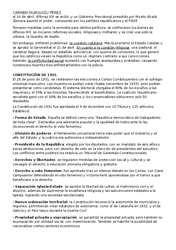 Tema 9, La segunda República de Historia de España, corregidos por profesor de historia.