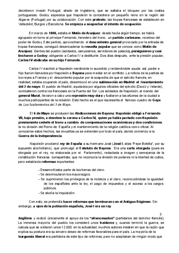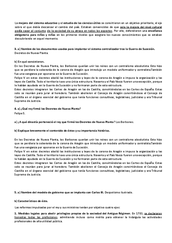Resumen de lo esencial de los bloques de preguntas cortas de Historia de España