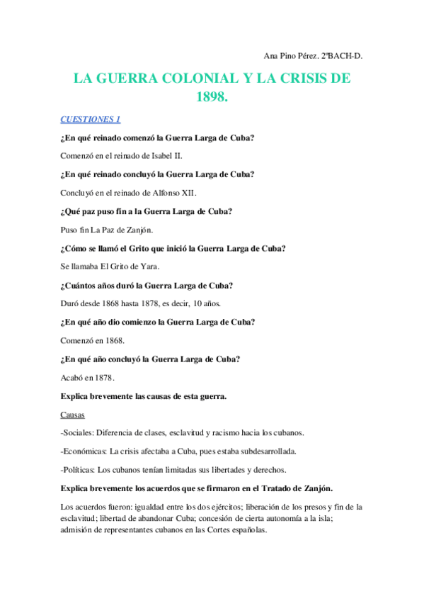 PREGUNTAS CORTAS DE LOS DOS SIGLOS
