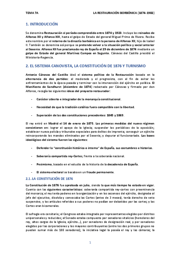 Con estos apuntes, facilitados por la profesora y sintetizados por mí, pude sacar un 10 en bachillerato como en selectividad (no están incluidas las preguntas cortas y largas). Falta el tema del sexenio democrático, que lo subiré en breve.