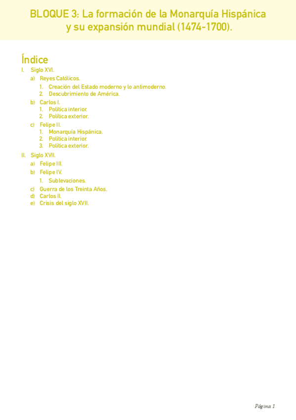 He publicado nuevos apuntes de 2º Historia de España: 1. Indice contenidos