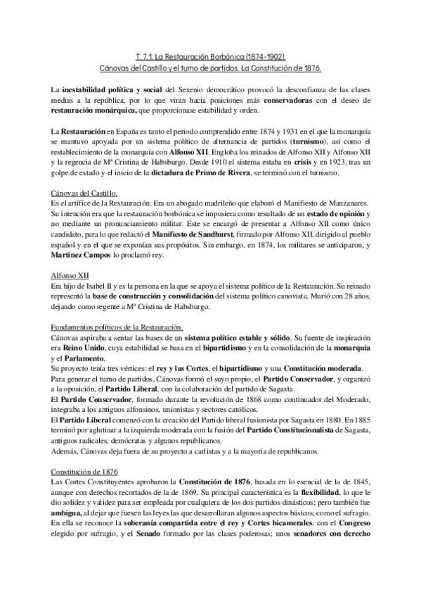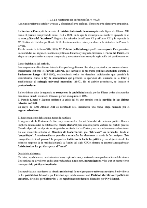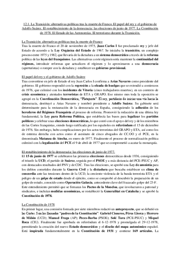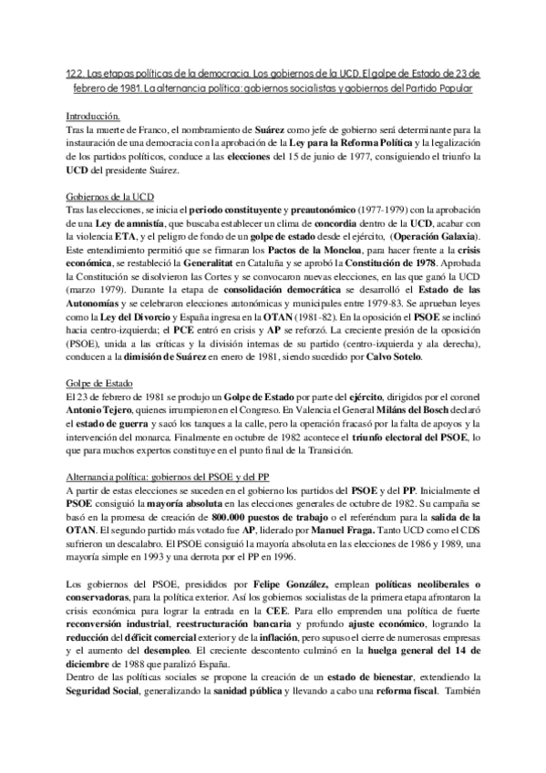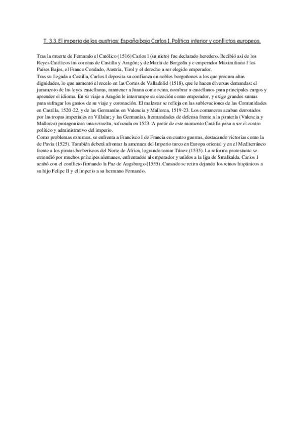 Temas cortos de Historia resumidos a lo fundamental de la EvAU. Con buen formato, y tamaño, que a mano, se ajusta al espacio del examen.
