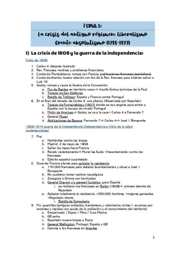 HISTORIA- TEMA 5 - CRISIS DEL ANTIGUO RÉGIMEN