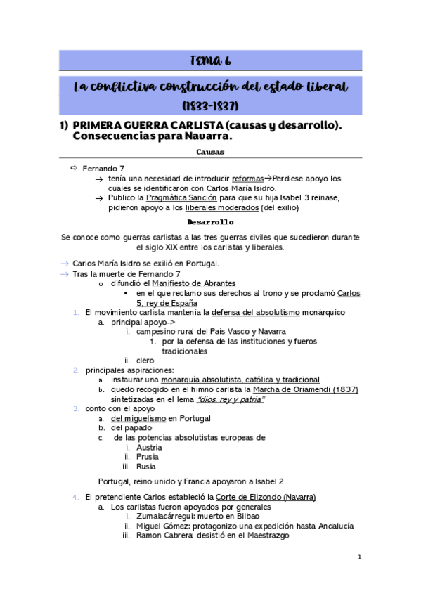 HISTORIA- TEMA 6- CONSTRUCCIÓN ESTADO LIBERAL