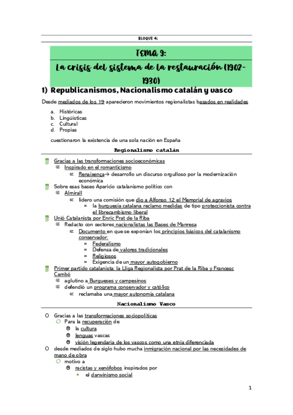 HISTORIA- TEMA 9 - CRISIS DEL SISTEMA DE LA RESTAURACIÓN