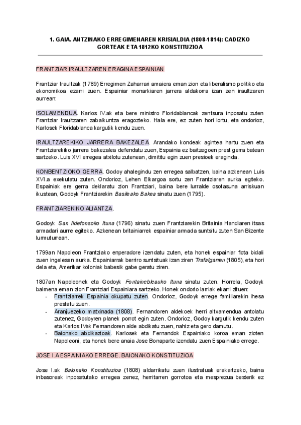 Espainiako Historia GAIAK