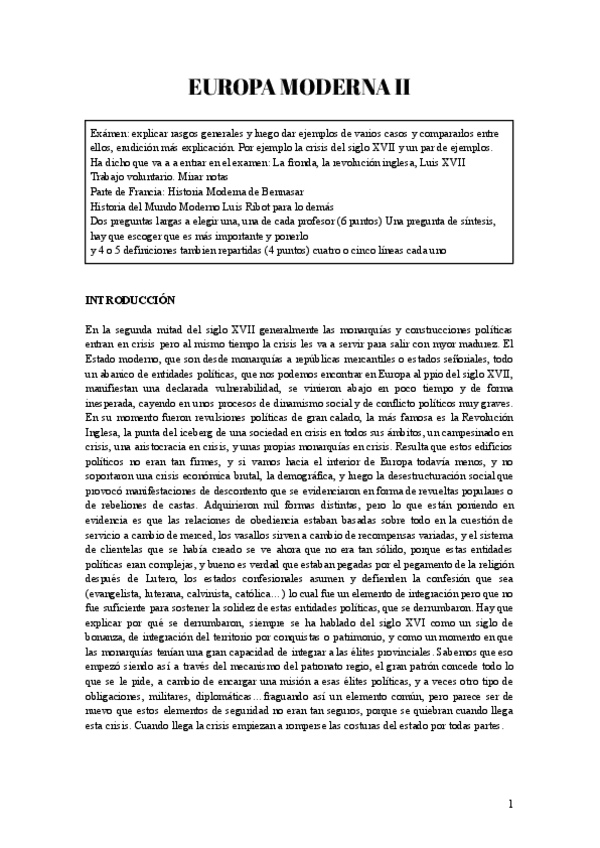 Historia de Europa Moderna II