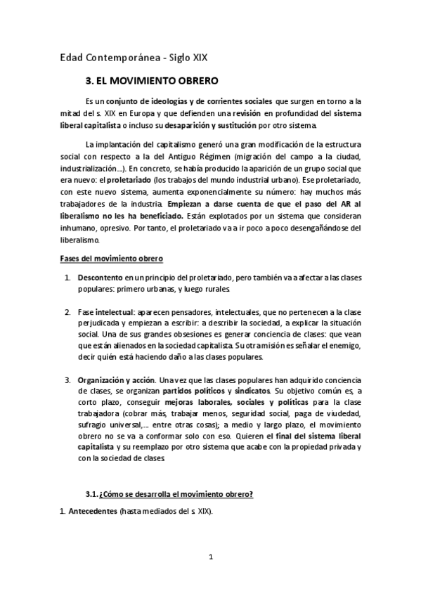 He publicado nuevos apuntes de 1º Historia de Europa: Siglo XIX - El movimiento obrero.pdf