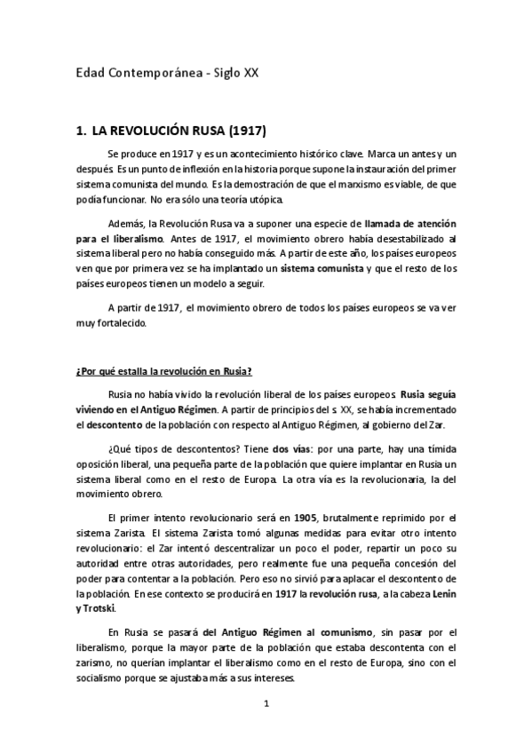 He publicado nuevos apuntes de 1º Historia de Europa: Siglo XX - La revolución rusa.pdf
