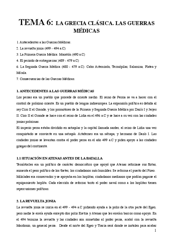 Temas 1 y 2 Historia de Grecia. Nota: 10