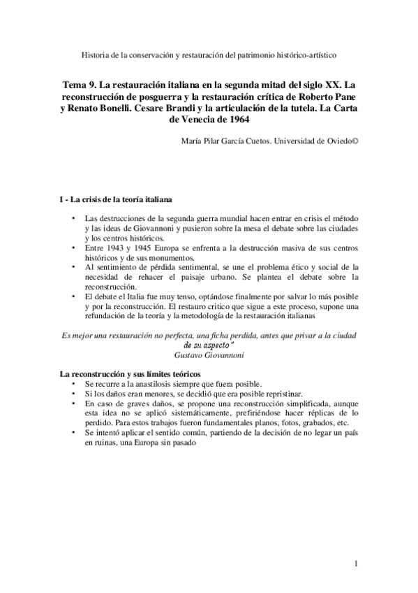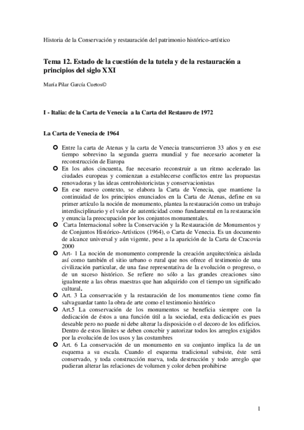 He publicado nuevos apuntes de 3º Historia de la Conservación y la restauración del Patrimonio histórico artístico: Tema 9. Carta de Venecia.pdf