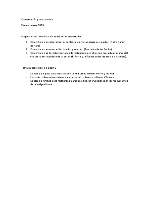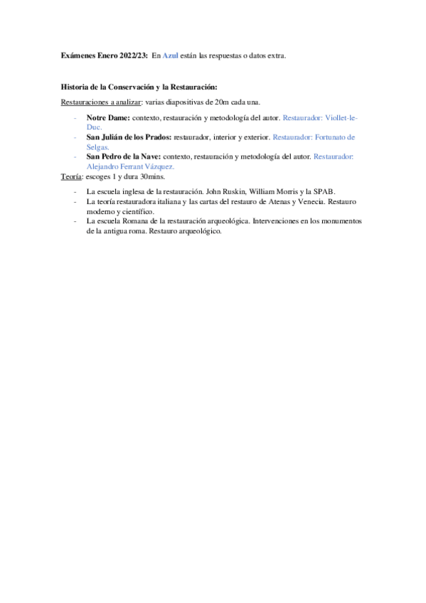 He publicado nuevos examenes de 3º Historia de la Conservación y la restauración del Patrimonio histórico artístico: Examen-Enero-22-23-Conservacion.pdf