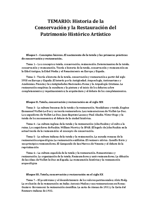 He publicado nuevos apuntes de 3º Historia de la Conservación y la restauración del Patrimonio histórico artístico: Temario Conservación.pdf