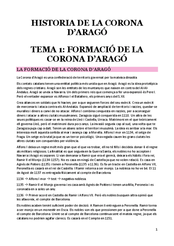 He publicado nuevos apuntes de 1º Historia de la Corona de Aragón: Història de la Corona d'Aragó