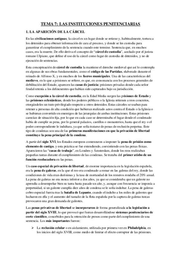 He publicado nuevos apuntes de 1º Historia de la Criminalidad y del Orden Público en España: TEMA-7-Las-instituciones-penitenciarias.pdf
