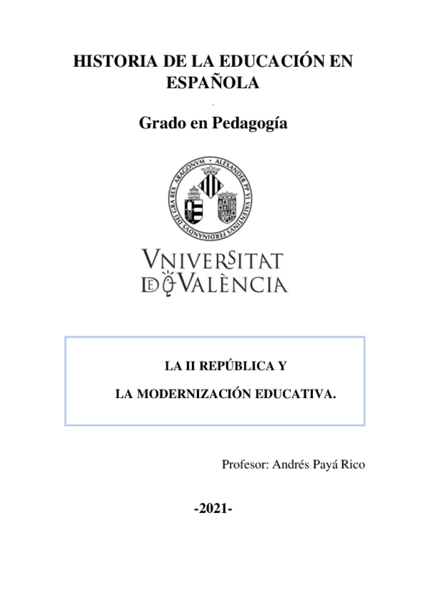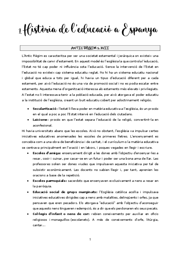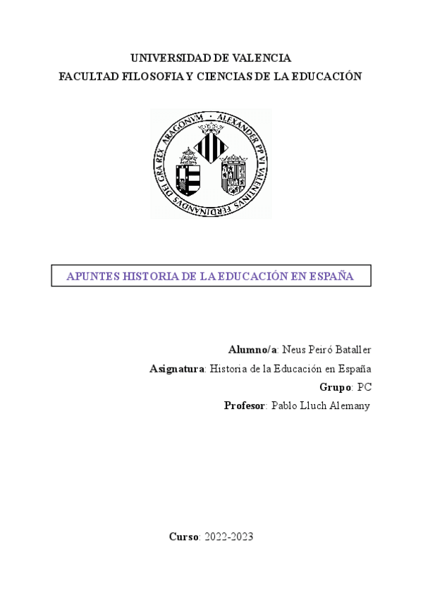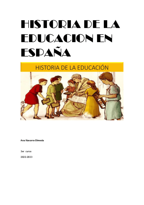 Apuntes historia de la educacion en españa, profesor Marcos. Curso 22/23