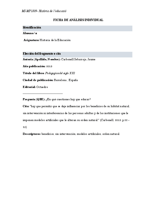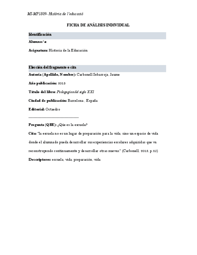 He publicado nuevos apuntes de 1º Historia de la Educación (Historia): 4.-Fitxa-analisi-individual-fragments-CARBONELL.docx-1.pdf