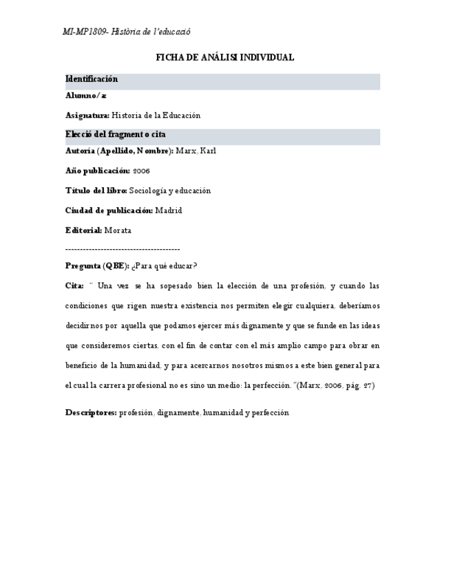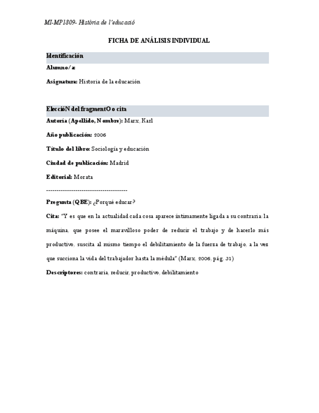 He publicado nuevos apuntes de 1º Historia de la Educación (Historia): 1.-Fitxa-analisi-individual-fragments-MARX.docx-1.pdf